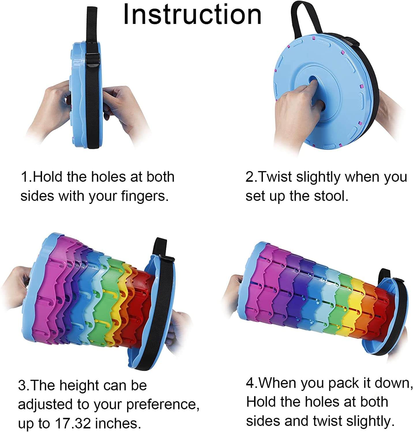 - Adjustable height & easy to use : The height can be adjusted to your preference, within the range of 2.36in to 17.32in. Suitable for both adults and children. When folded, the size is only 2.36in x 9.84in x 9.84in. To set up and pack down, only need a few seconds. It is convenient for you and your families to use on any occasion.
